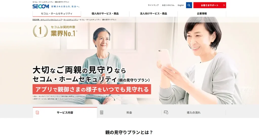 手厚いサポートと総合的な安心感を求める場合は、セコムの親の見守りプランが適しています。防犯対策から健康管理まで包括的にカバーし、24時間体制の専門スタッフによるサポートが受けられます。